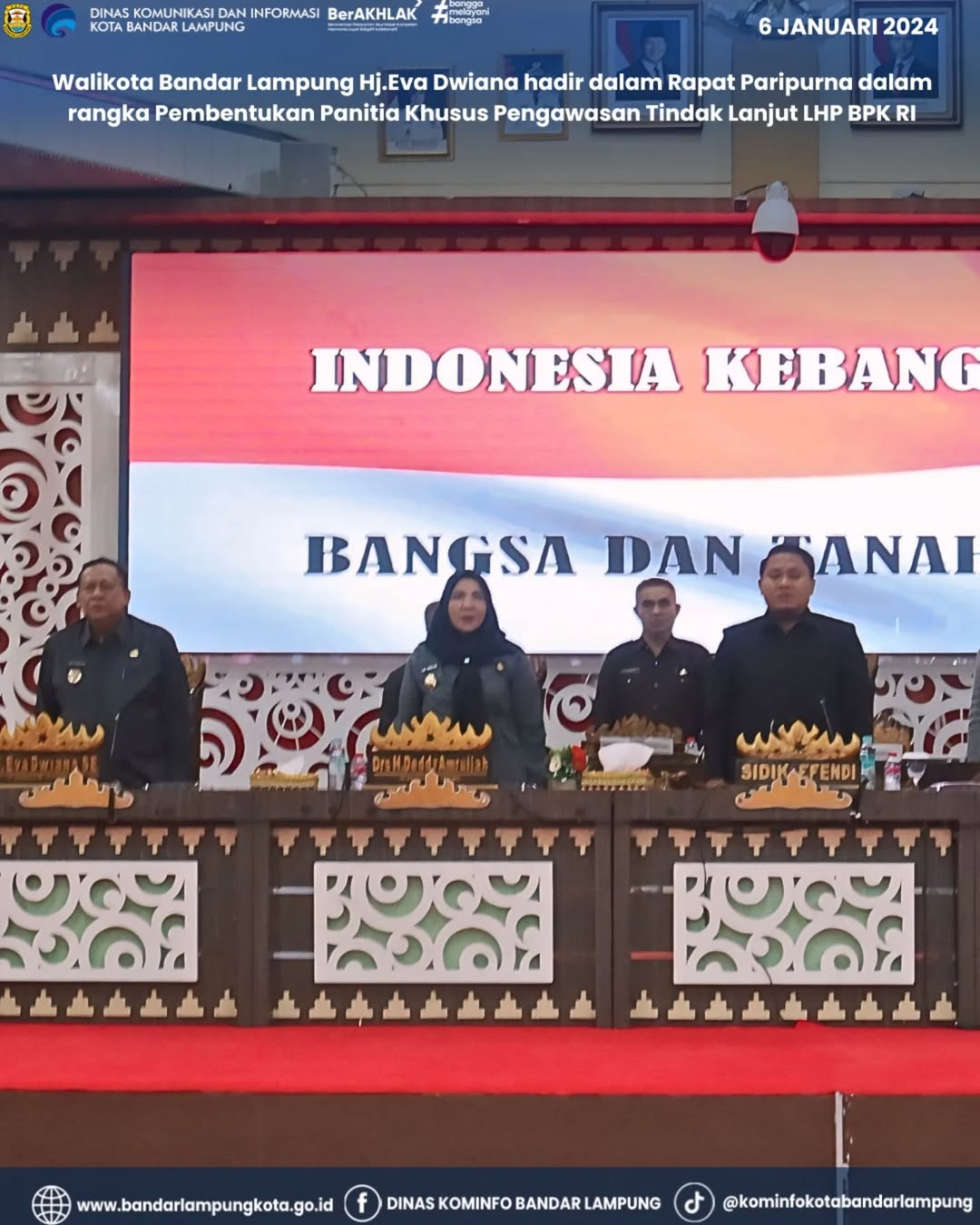 Walikota Bandar Lampung Hj.Eva Dwiana hadir dalam Rapat Paripurna dalam rangka Pembentukan Panitia Khusus Pengawasan Tindak Lanjut LHP BPK RI terhadap Kepatuhan atas Efektifitas Pengelolaan Pencegahan Pencemaran Limbah Bahan Berbahaya dan Beracun Medis dan Kepatuhan Belanja Daerah T.A 2024 oleh DPRD Kota Bandar Lampung, Senin (6/1/2025).