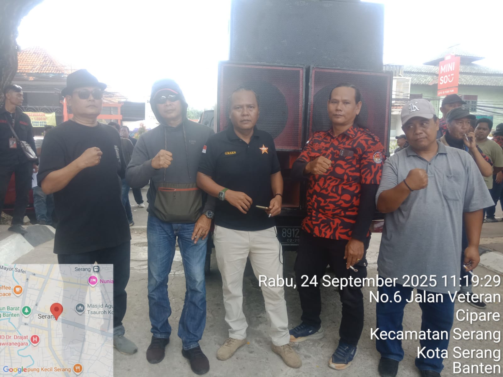 SERANG | Perkumpulan Gerakan Moral Anti Kriminalitas (GMAKS) bersama Kesatuan Komando Pembela Merah Putih (KKPMP) Kota Serang menggelar aksi unjuk rasa di depan Kantor Bank Banten dan Dinas Pariwisata Provinsi Banten, Rabu (24/9/2025).