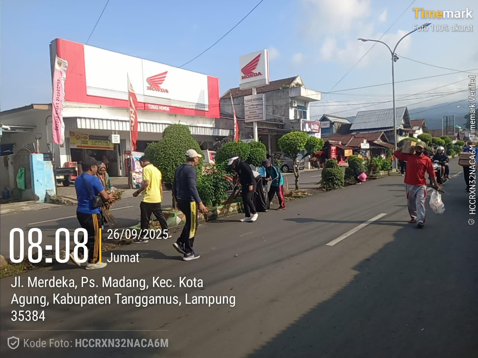 TANGGAMUS — Menindaklanjuti surat edaran Bupati Tanggamus Nomor: 660/4942/34/2025 Tanggal 23 September 2025 Tentang dukungan Kegiatan Worid Clean Up Day (WCD) Indonesia Melalui Gotong Royong Bersih Sampah Serentak Tahun 2025 Di Kabupaten Tanggamus. Kelurahan Pasar Madang, Kecamatan Kota Agung menggelar bersih-bersih disepanjang jalan Jl. Merdeka Kota Agung. Jumat, 26/09/2025.